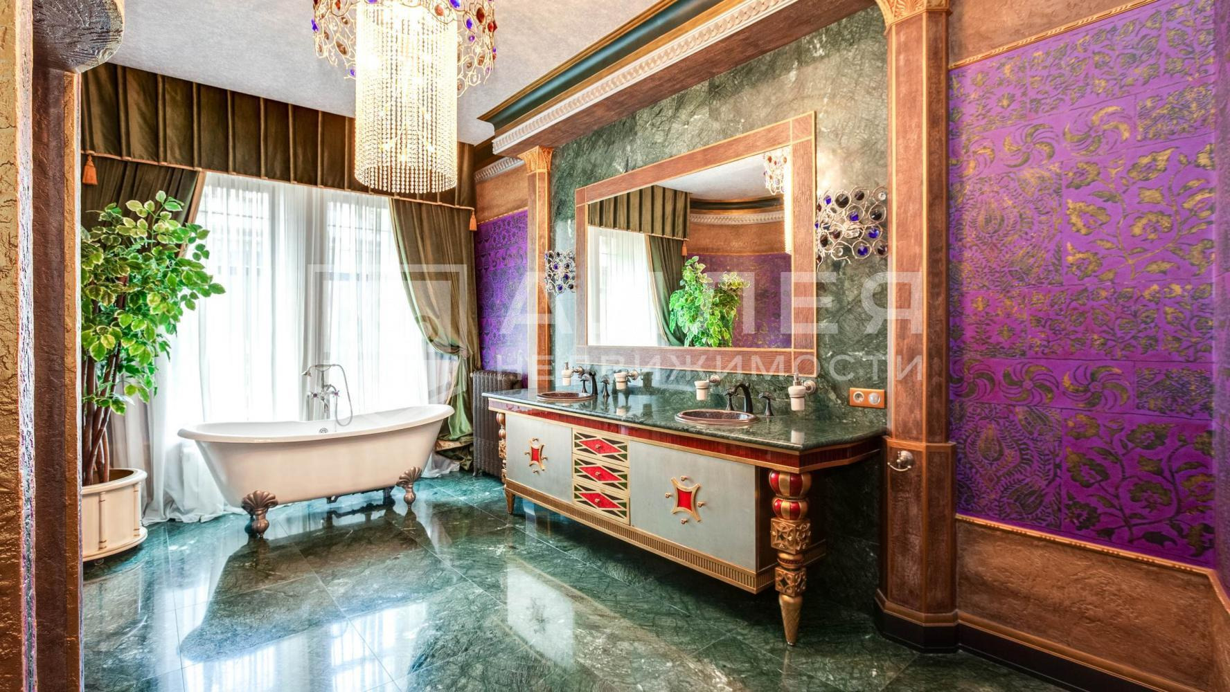 | Описание: | Изысканный особняк с дизайнерским интерьером. В отделке дома использованы материалы: натуральный камень, мрамор, сусальное золото. Установлена авторская итальянская мебель. |