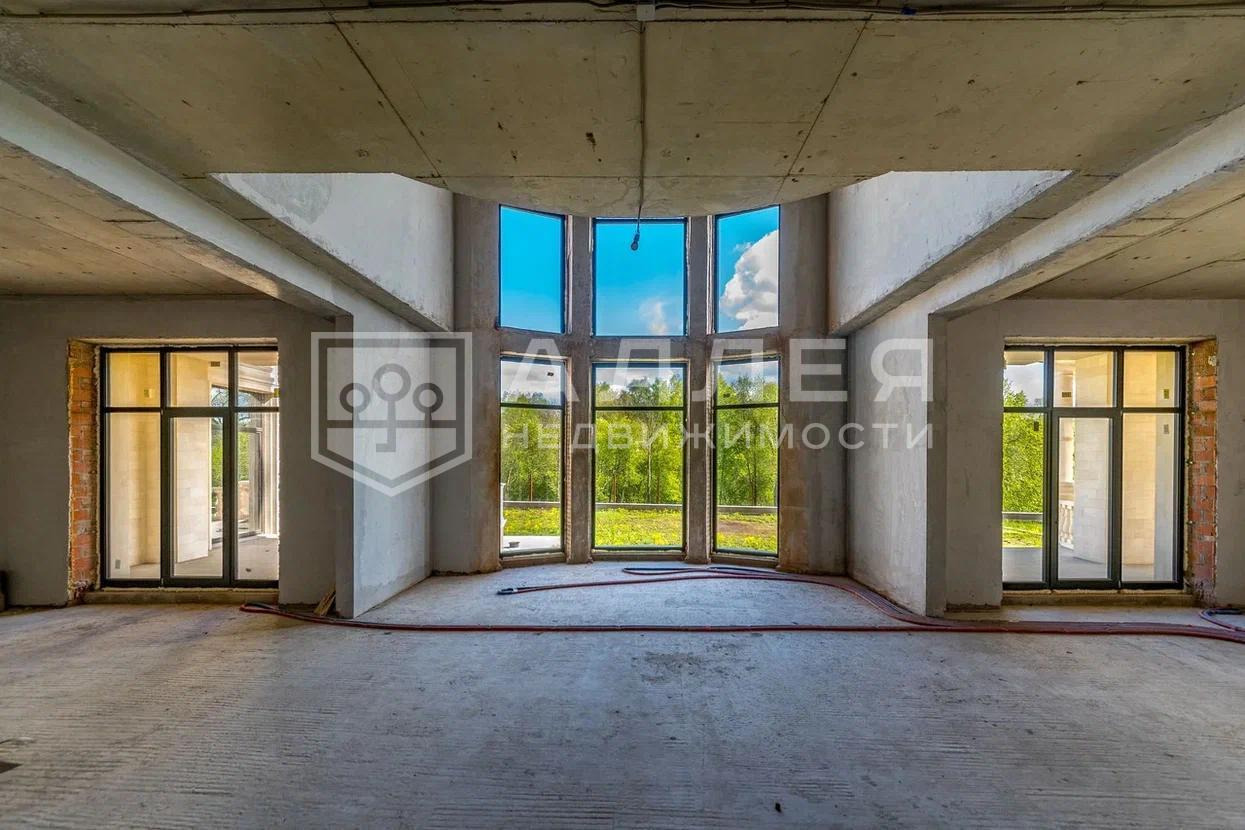Первый этаж: Гостевой санузел; Две спальни с гардеробными и санузлами; Гостиная с вторым светом; Столовая с выходом на крытую террасу; Кухня; Каминная; Бассейн с хаммамом и сауной и выход открытую террасу. Предусмотрен лифт с цокольного этажа, до мансарды.