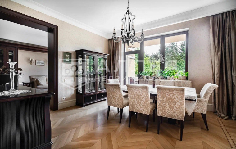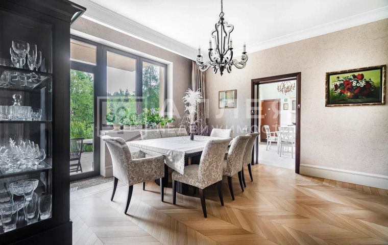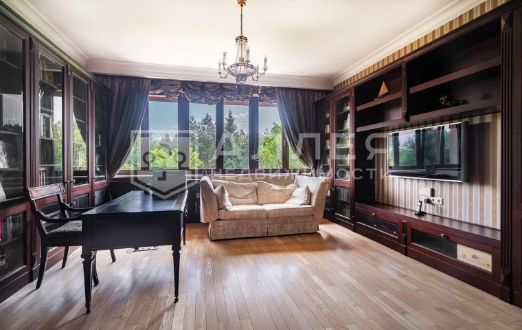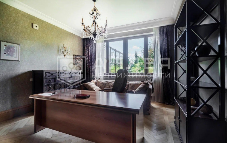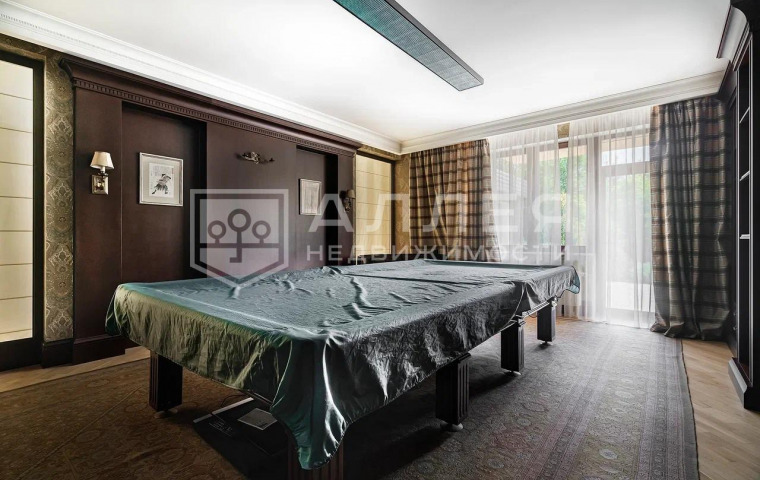 1 этаж: холл, гардеробная комната, гостевой с/у с душевой, гостевая спальня, кабинет, гостиная с камином и выходом на террасу, столовая, кухня, бильярдная, сезонная гардеробная, SPA-зона с выходом на террасу, зимний сад, котельная, постирочная, гараж на 2 м/м.