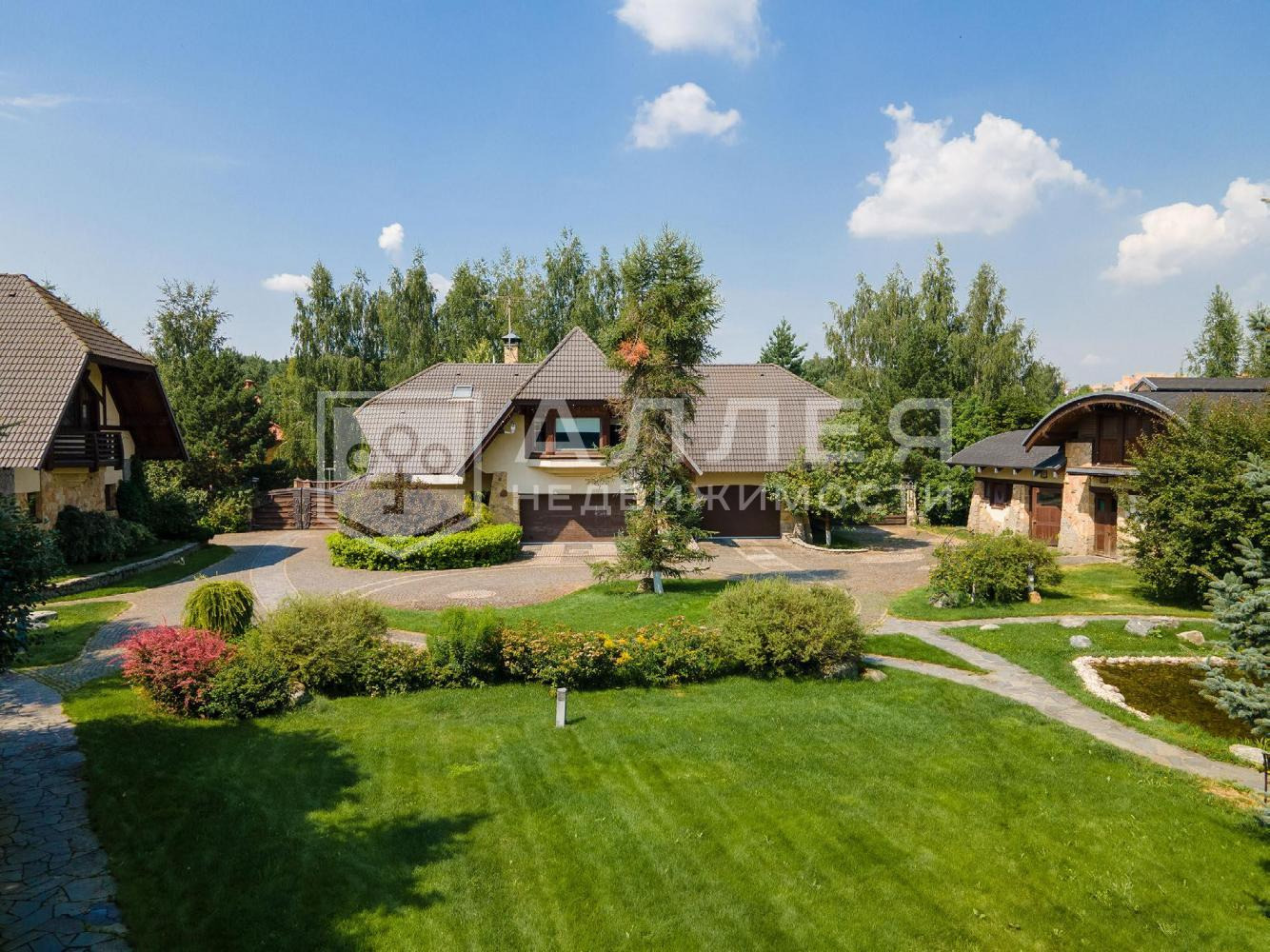 | Описание: | На участке выполнен профессиональный ландшафтный дизайн. На территории выполнено два въезда: один к главному дому с набережной реки и второй в посёлок. На участке высажено большое количество деревьев, кустарников и цветников. Обустроен искусственный пруд. |