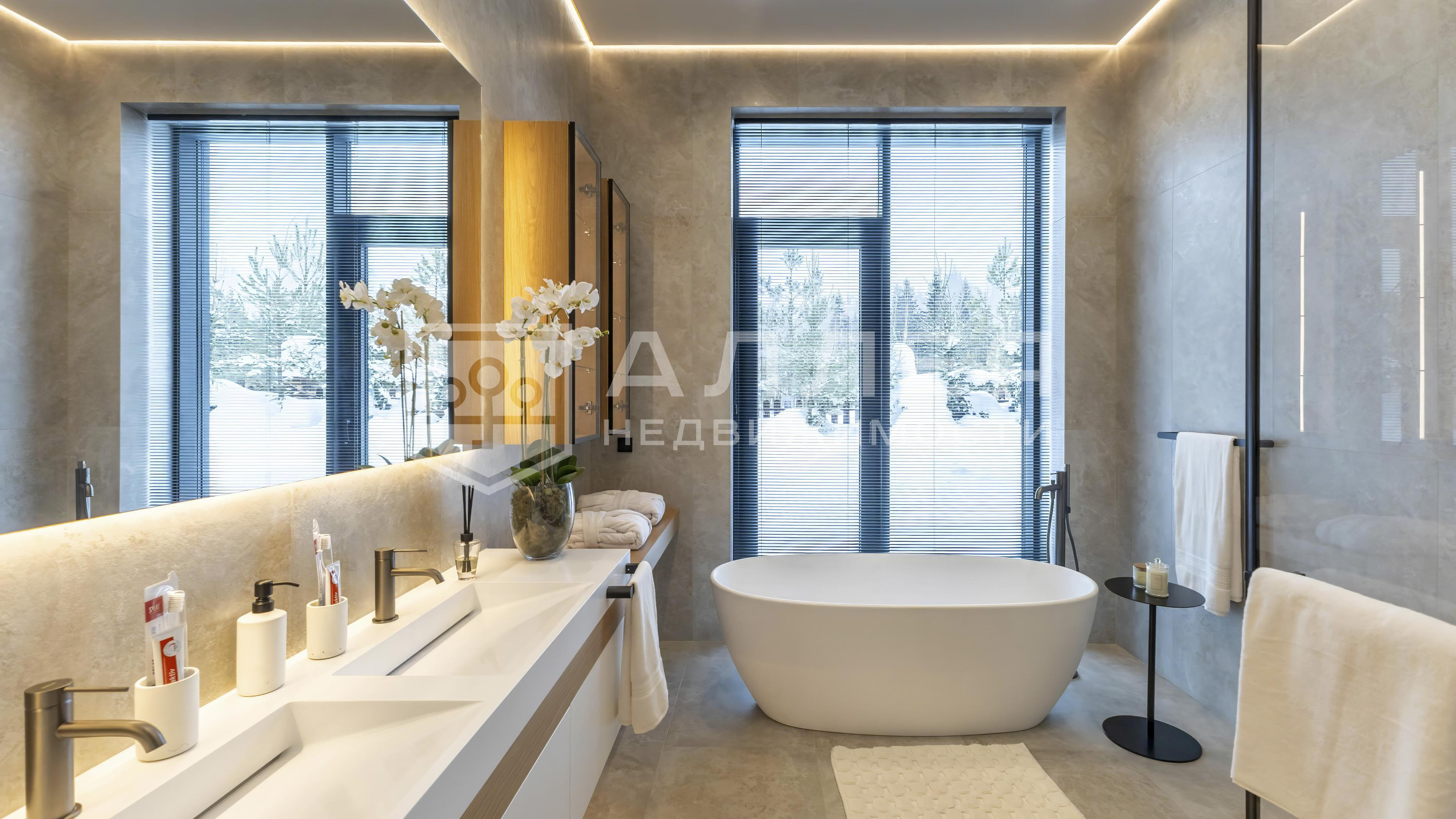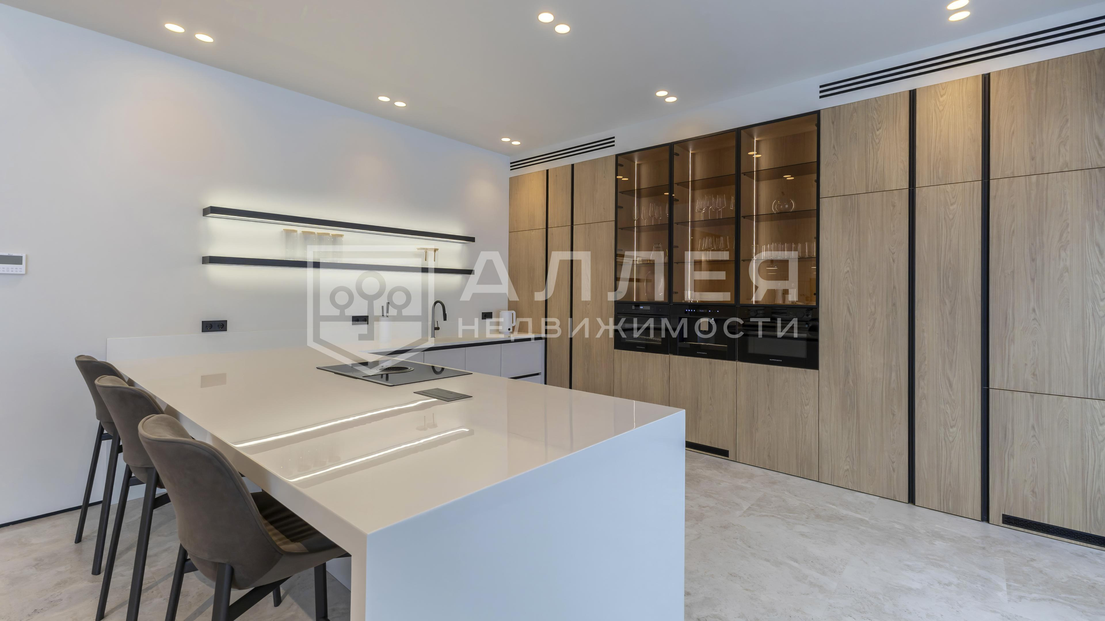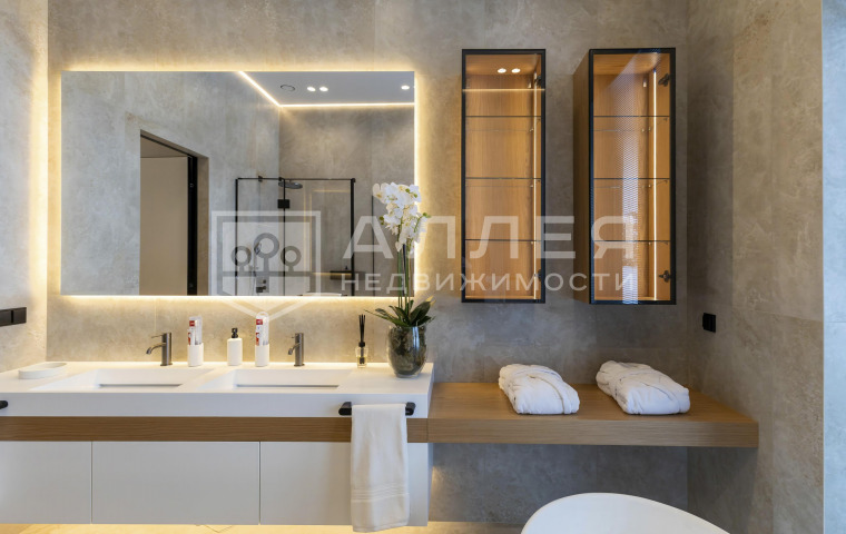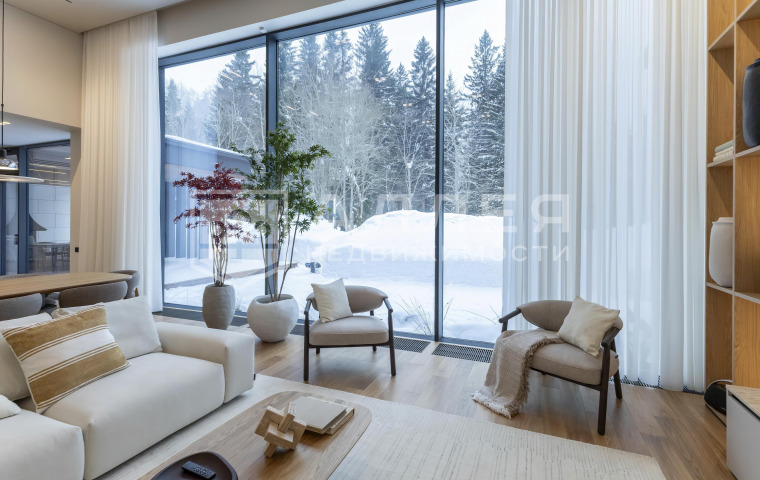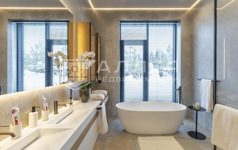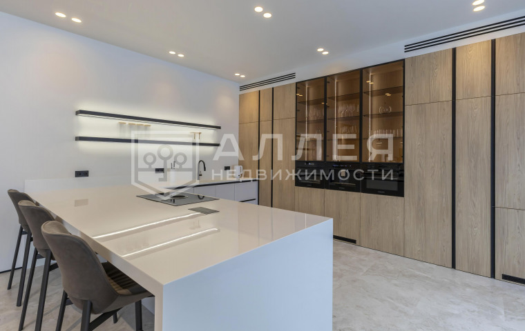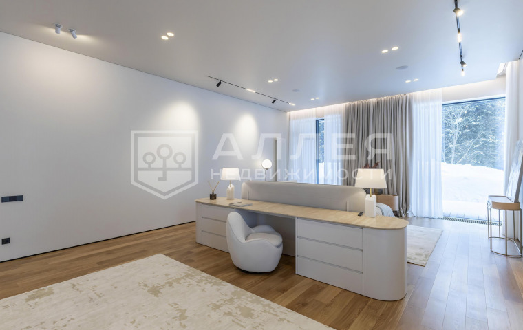 | Описание: | Одноэтажный дом на лесном участке. Больше ни каких ступеней! В доме большая гостиная - кухня - столовая, около 100кв.м. и высокие потолки 4.6м. Из гостиной и всех комнат открывается красивый вид на лесной приватный участок. Есть вторая, рабочая кухня и кабинет. Установлено панорамное алюминиевое остекление в пол, канальное кондиционирование и приточно - вытяжная вентиляция, водяные теплые полы. На стенах декоративная штукатурка, на полу дубовый паркет. В каждой спальне отдельный санузел и гардеробная, в мастер - спальне два санузла и большая гардеробная. Есть постирочная и автономная квартира персонала. |