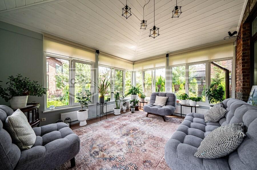 | Описание: | Резиденция состоит из двух кирпичных домов, общей площадью 360 м2. Дома построены из красного кирпича, с отделкой фасада из бельгийского кирпича. Высота потолков доме 5 метров. Все коммуникации в домах центральные, поселковые. В планировку домов включены: 5 спален, 4 санузла, 2 кухни, 2 гостинные совмещенные с столовой, баня и зимний сад. |