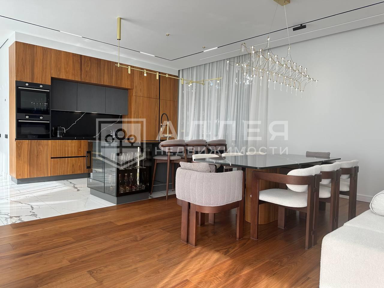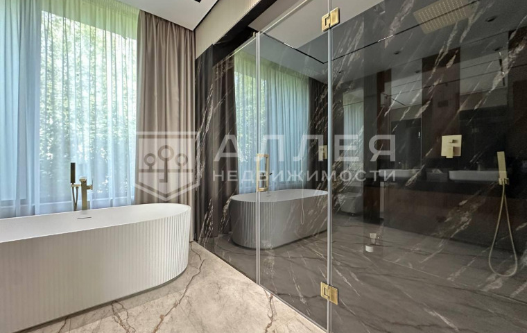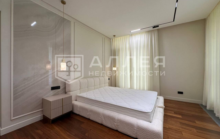 | Описание: | Новый, современный дом под ключ. Полностью меблирован и готов к проживанию. Сделана современная удобная планировка. Есть спальня на первом этаже для гостей или родителей с отдельным санузлом. Гостиная - кухня - столовая большая, около 80м2. У основной кухни оборудована вторая черновая кухня - зона хранения. В каждой спальне второго этажа отдельный санузел и гардеробная. Для хозяев большой блок со спальней, санузлом и гардеробной. Установлены теплые полы и кондиционеры, высокие потолки более 3м и панорамное алюминиевое остекление в пол, высокие двери скрытого монтажа. На полу паркет, на стенах декоративная штукатурка, установлена премиальная техника ASKO и Liebherr. Есть большой теплый гараж на два автомобиля и постирочная. Дом построен из кирпича с монолитными перекрытиями. |