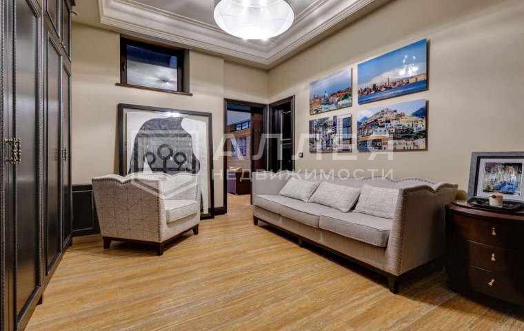 2 этаж: холл, кабинет, мастер-спальня с гардеробной, ванной комнатой и выходом на балкон, 3 спальни со своими гардеробными и ванными комнатами