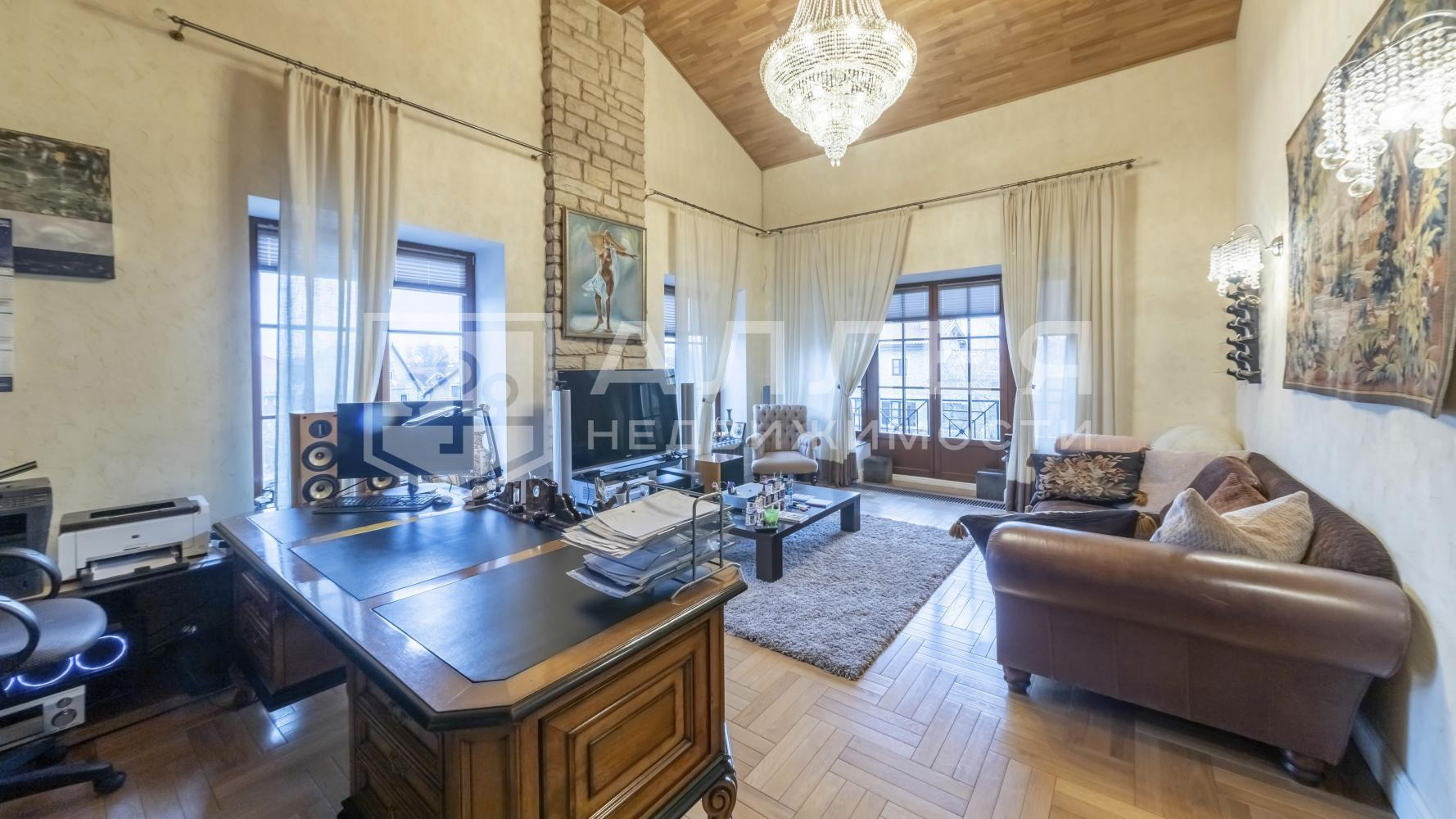 | Описание: | Дом с дорогим авторским интерьером в поселке бизнес класса. Интерьер дома оформлен американской и итальянской мебелью. В освещении дома использованы светильники и люстры из горного хрусталя американской фабрики Schonmbek. Полы уложены итальянским мрамором и эксклюзивным паркетом. Кухонный гарнитур оснащен техникой Smeg. Большая и светлая гостиная площадью 100 кв.м. с дровяным камином. Из кухни - столовой выход на крытую террасу для летнего отдыха. Мастер спальня со своей ванной комнатой и гардеробной. Кабинет с панорамным остеклением с пятиметровыми потолками. Ванные комнаты оборудованы американской сантехникой. Выход из дома в теплый гараж. Есть отдельный гостевой дом 200 кв.м. с кухней - гостиной и двумя спальнями с санузлами, квартирой для персонала и дополнительным гаражом на один автомобиль. |