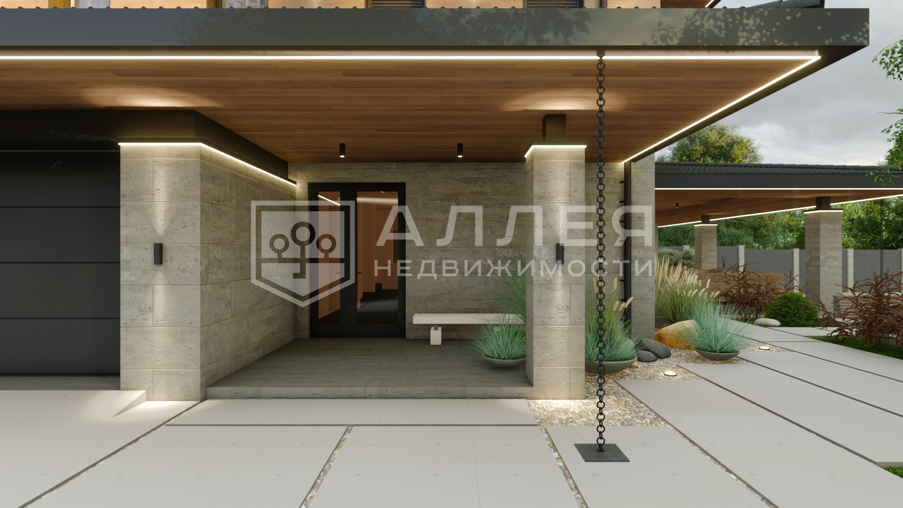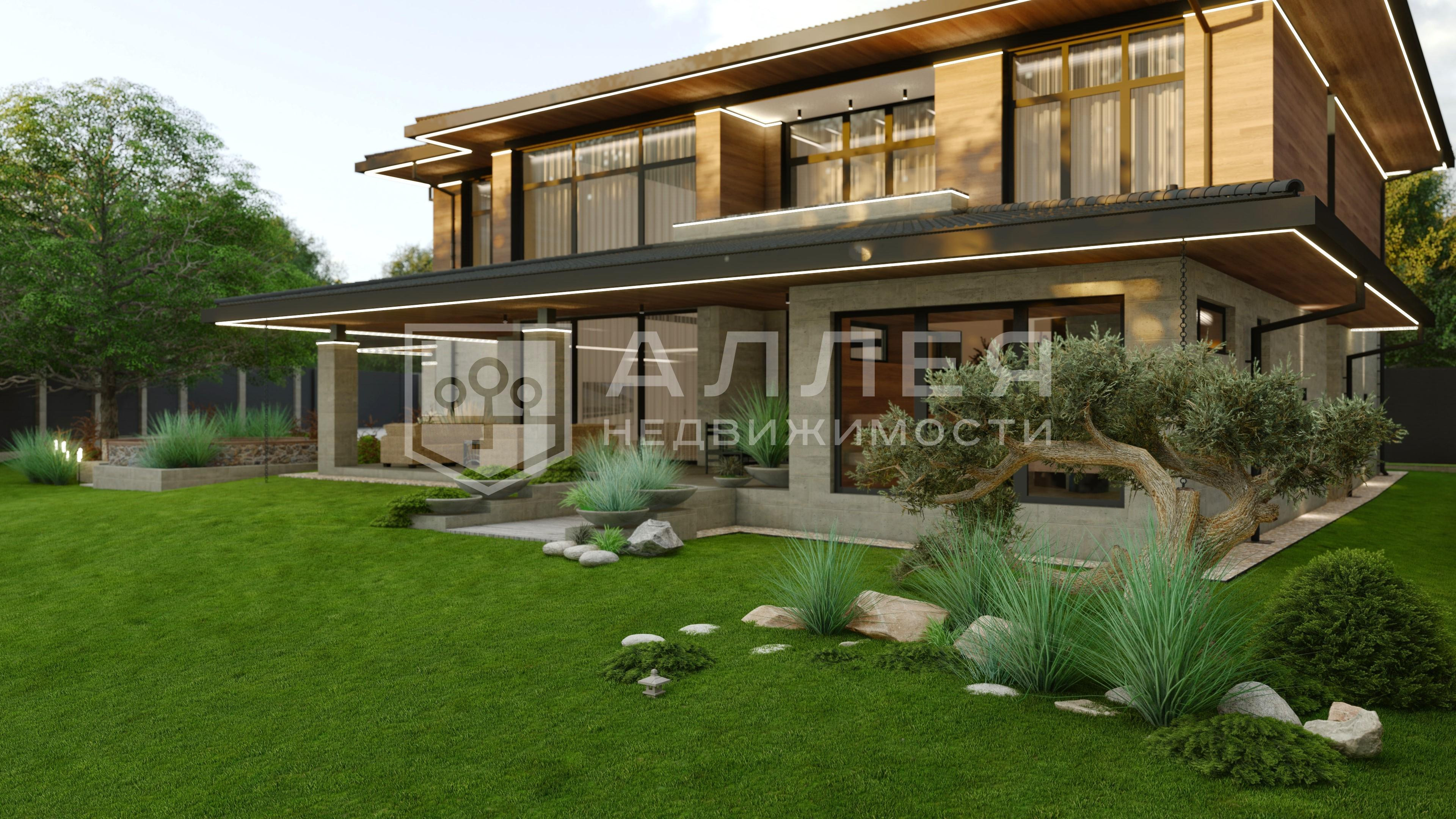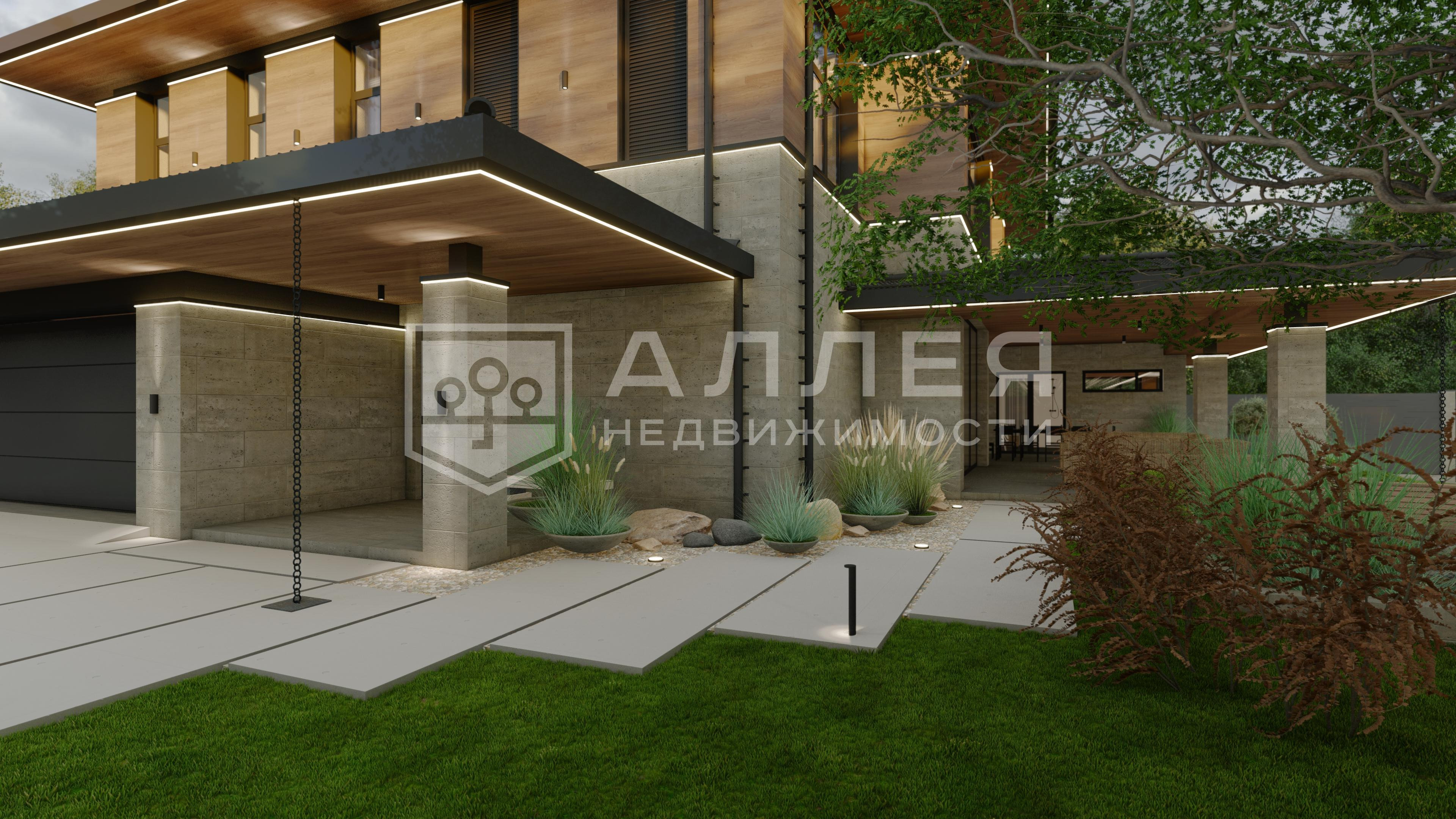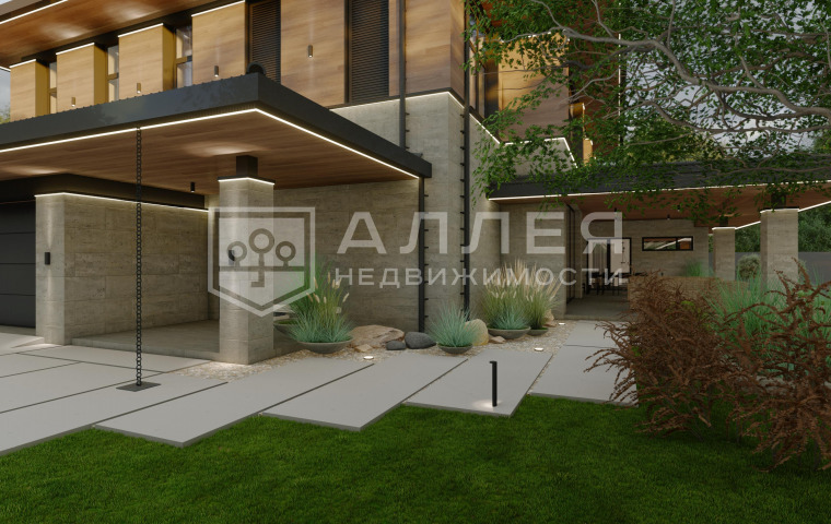 | Описание: | Современный двухэтажный дом в стиле Райта с панорамным остеклением, что позволяет максимальному количеству света проникать внутрь. На первом этаже расположена кухня - гостинная, мастер - спальная с санузлом и гардеробной, гостевой санузел, кабинет, терраса и гараж на 2 автомобиля. На втором этаже 3 спальни со своими санузлами и гардеробными. Вокруг дома ухоженный зеленый газон и декоративные растения, что подчеркивает его привлекательность и гармонию с окружающей природой. Готовность дома сентябрь 2026 года. |