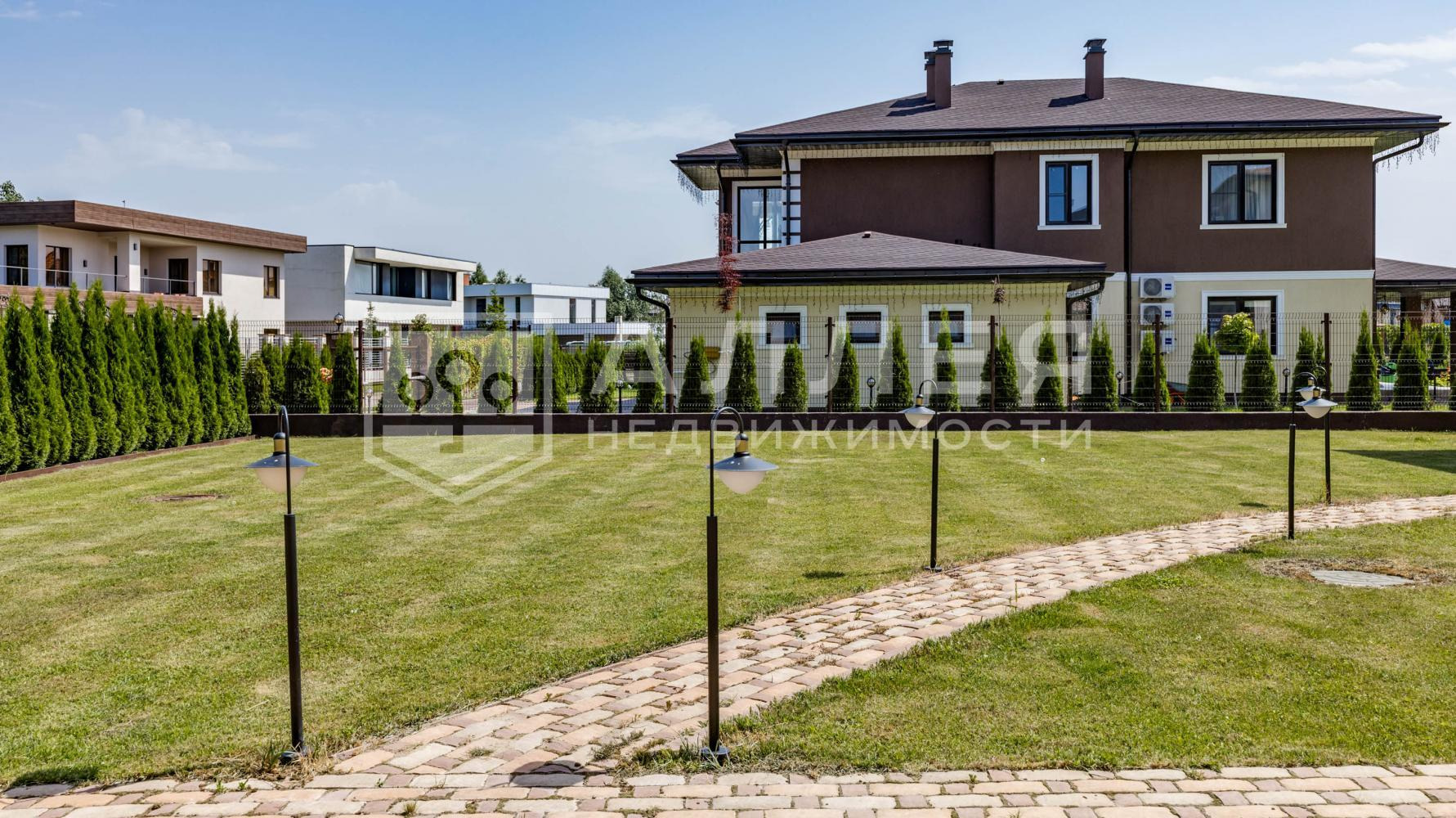 | Описание: | На участке выполнен ландшафтный дизайн. Ухоженный газон, высажены туи, хвойные деревья и кустарники. Выполнен автоматический полив и декоративное освещение участка. Парковые дорожки вымощены брусчаткой. Есть отдельная беседка для патио и барбекю. В едином архитектурном стиле построен отдельный дом 115 кв.м. со SPA комплексом и гостевой квартирой. Есть парковка на несколько автомобилей. Установлены автоматические ворота. |