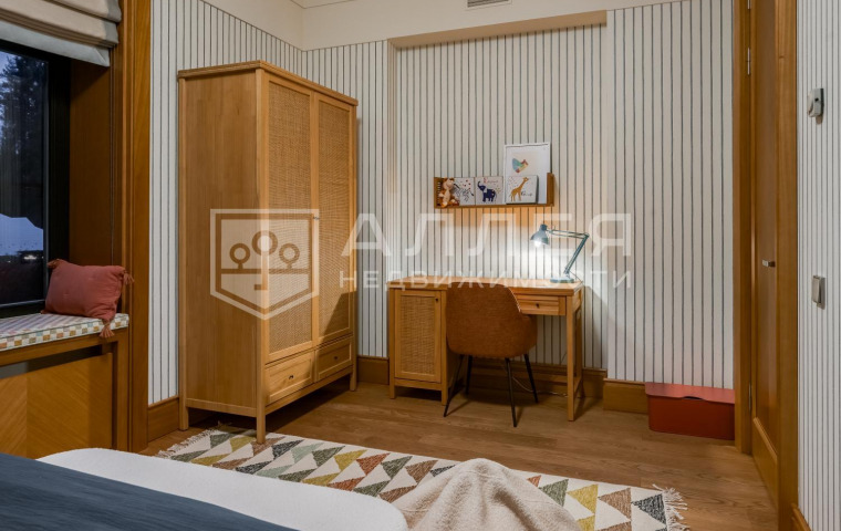 2 этаж: гостиная/библиотека, спальня с камином, террасой, гардеробной и с/у, 2 детские спальни с гардеробной, с/у и гостиной, 2 спальни с своими с/у, гостиная. Спа-зона: бассейн, терраса, сауна, хамам,