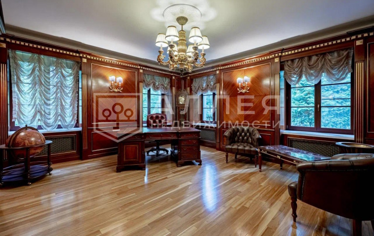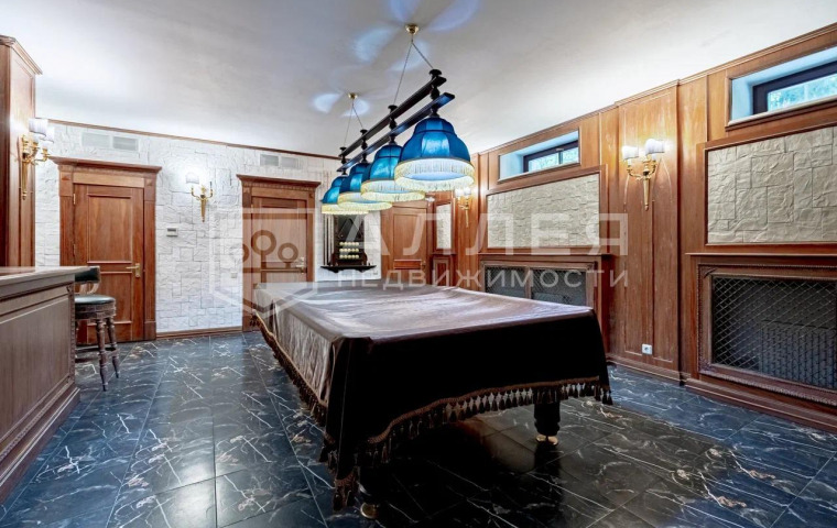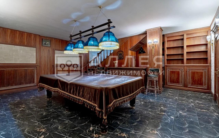 1 этаж: холл, гостиная, столовая, кухня, каминная, спальня с с/у, кабинет, спа-зона (бассейн и сауна), бильярдная, гардеробная, с/у терраса