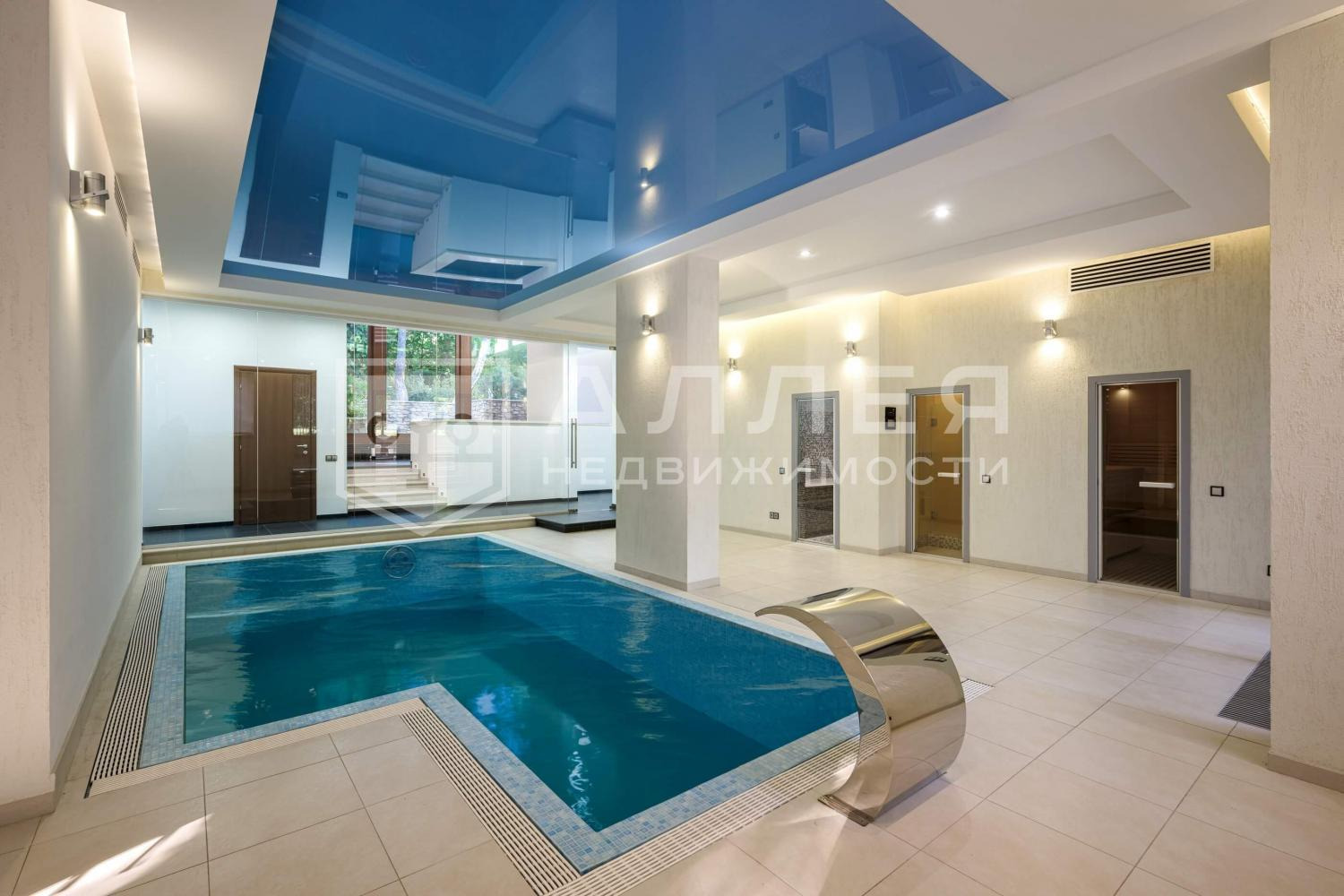 1 этаж: бассейн с зоной отдыха, хамам, сауна, душ, винный погреб, кинозал, квартира для персонала, гараж, бойлерная, доп. технические помещения