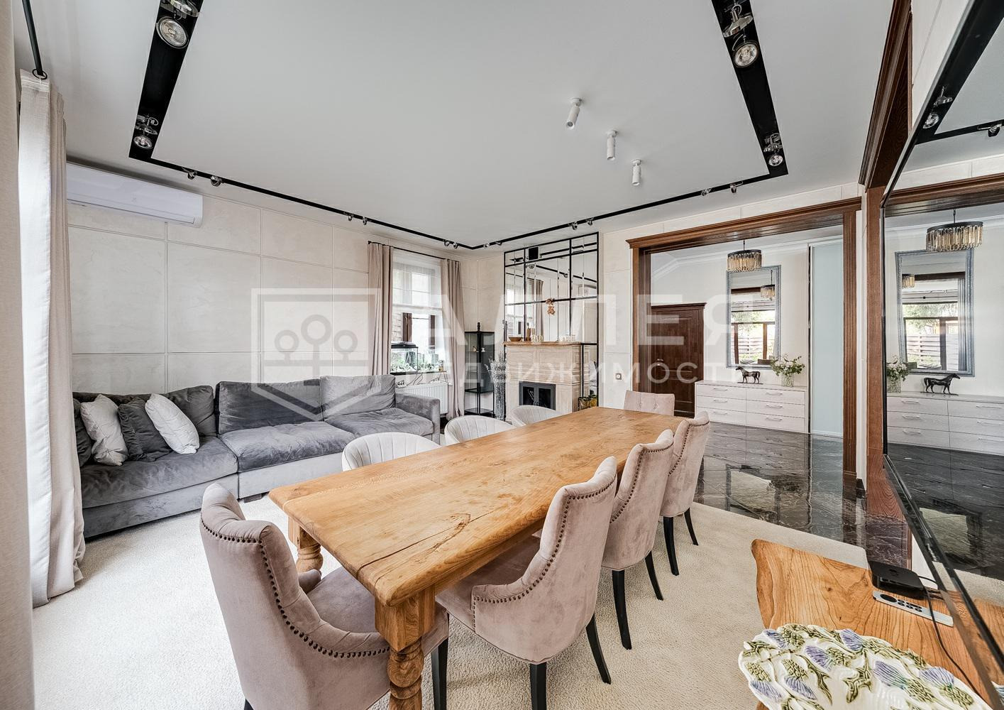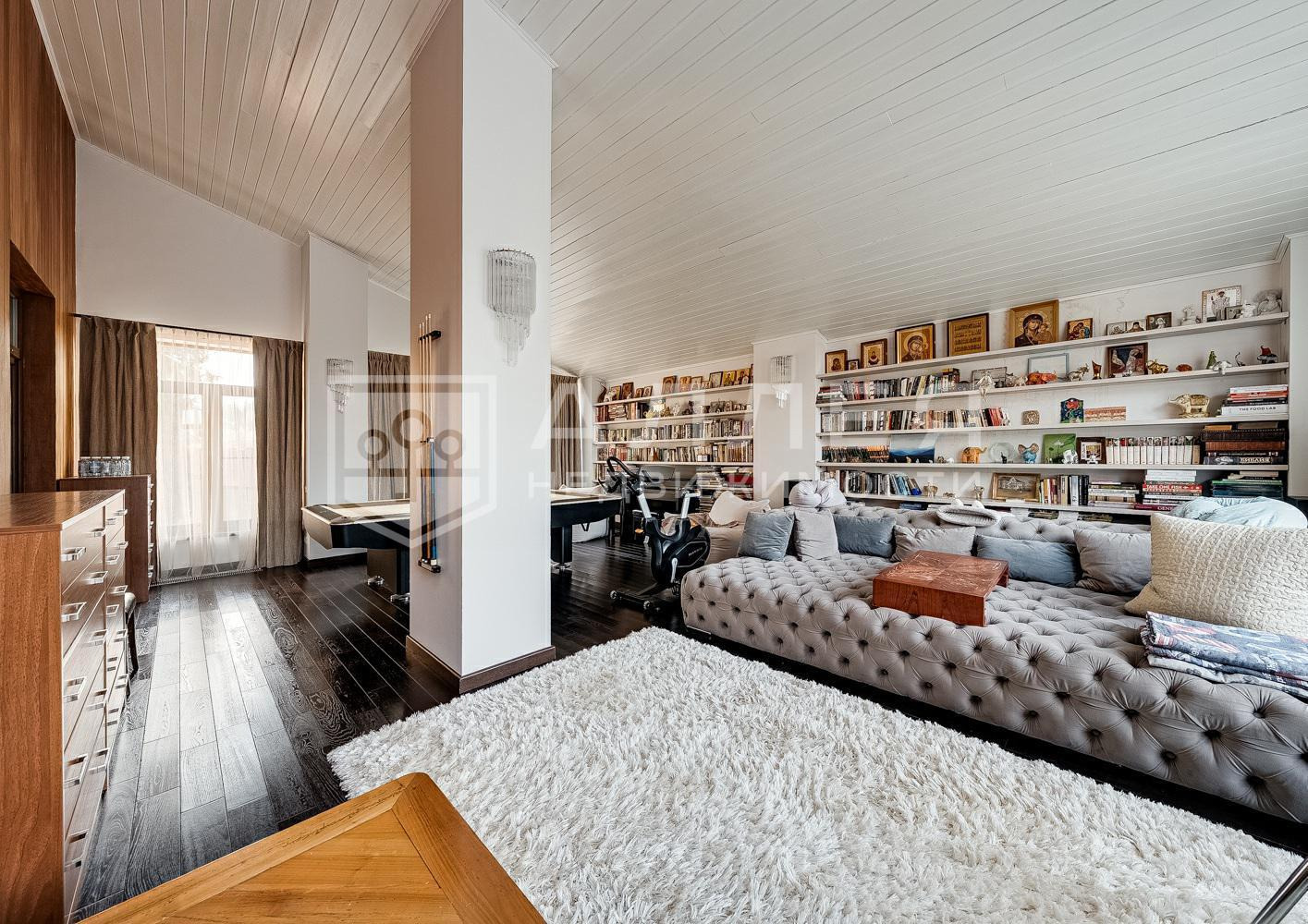 | Описание: | Современный дом в стиле шале на лесном участке с хвойными деревьями. В доме выполнен изысканный интерьер в неоклассическом стиле с качественной мебелью и дизайнерскими элементами декора. |