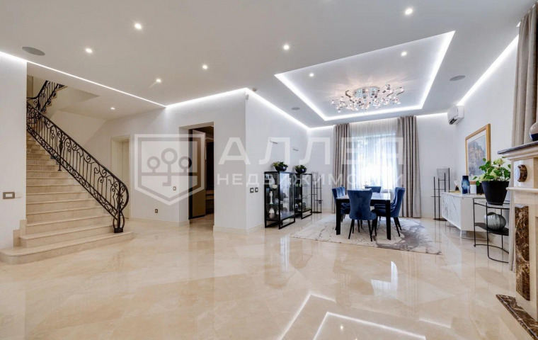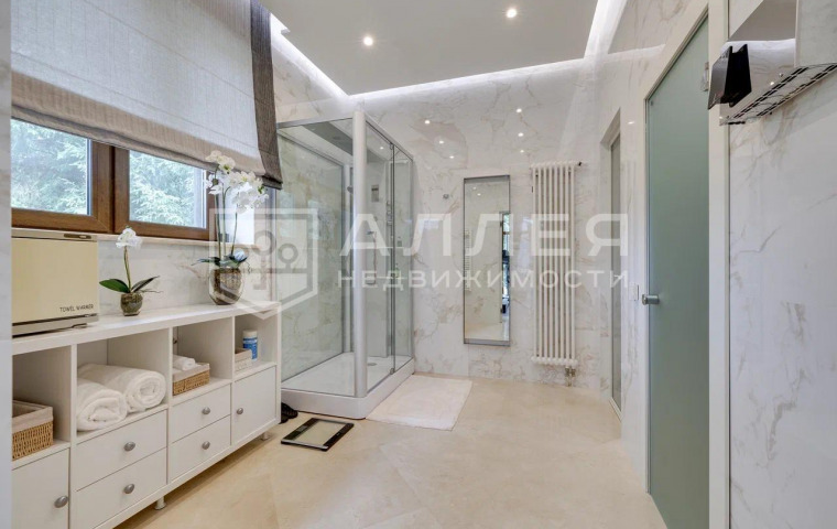 | Описание: | Благоустроенный загородный коттедж на Рублево-Успенском шоссе, в охраняемом коттеджном посёлке. На просторном участке в 30 соток размещен двухэтажный дом, площадью 500 м2. В доме выполнен дизайнерский интерьер с использованием итальянской мебели, мраморных полов, кованной лестницы и установленной современной техники. Также в доме высокие потолки, благодаря которым помещения дома всегда наполнено светом и воздухом. |