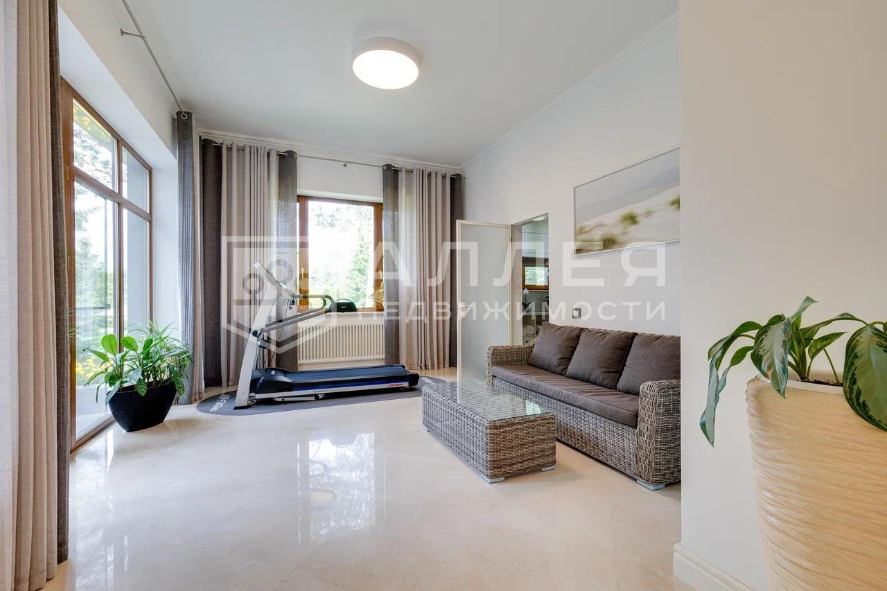 1 этаж: гостиная, кухня-столовая, терраса, спальня с ванной комнатой, с/у, постирочная, спортзал, сауна, ванная комната с с/у, кабинет