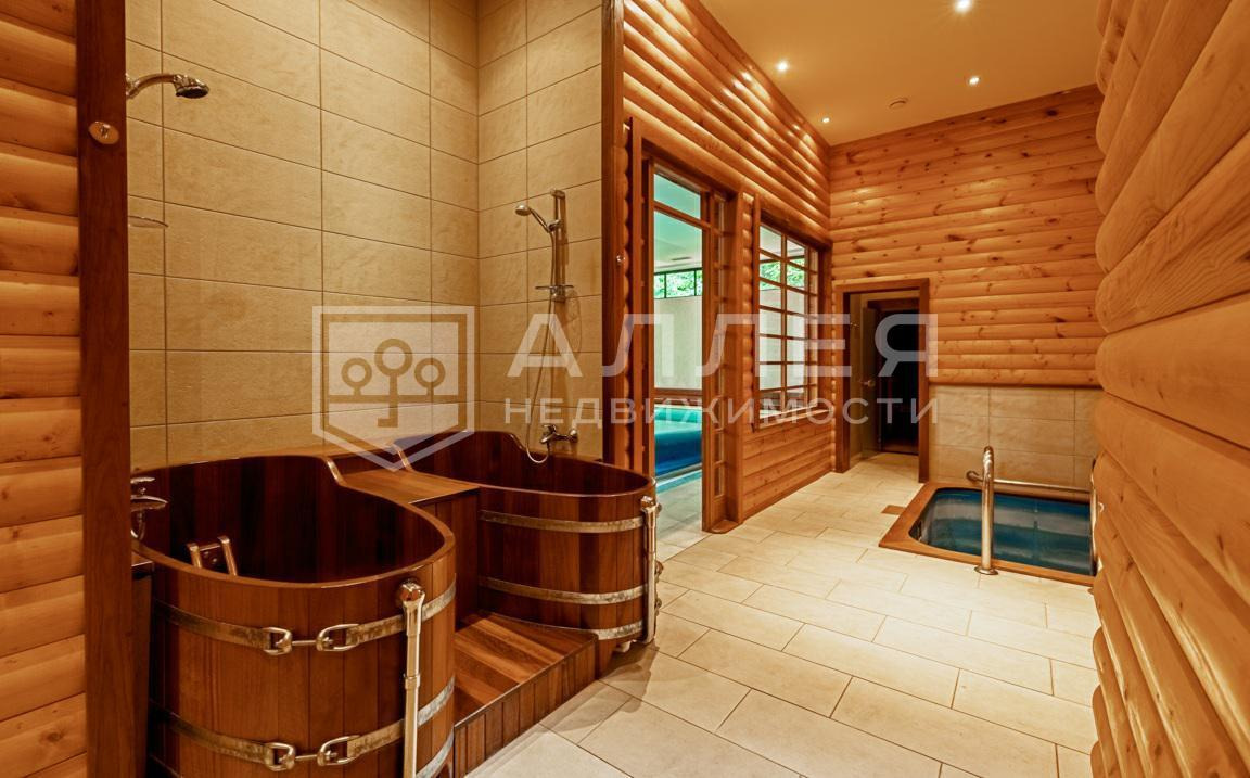 1 этаж: прихожая, гардеробная, холл, терраса, гостиная, кухня, столовая, рабочая кухня, кабинет, 2 спальни с своими с/у, гардеробная, кладовая, с/у, СПА-комплекс: бассейн, сауна, русская баня, купель, душевая с с/у, зона отдыха