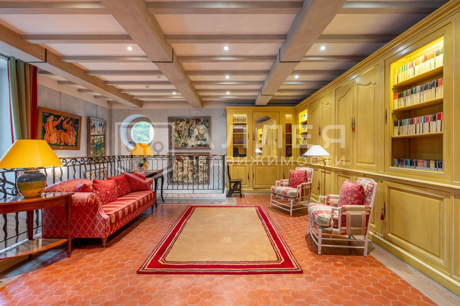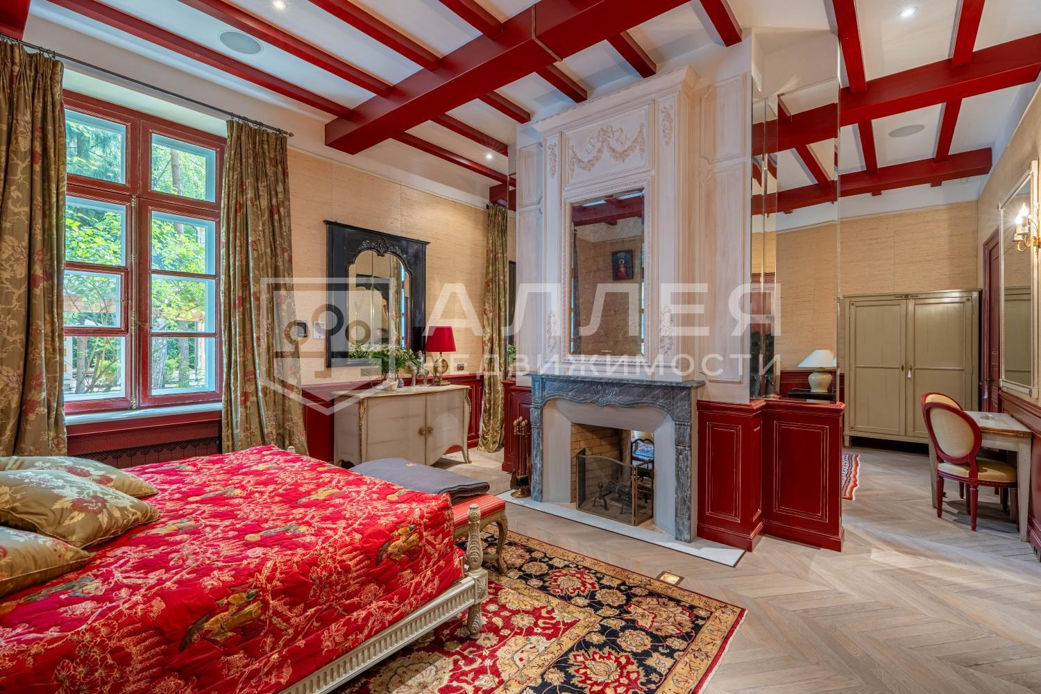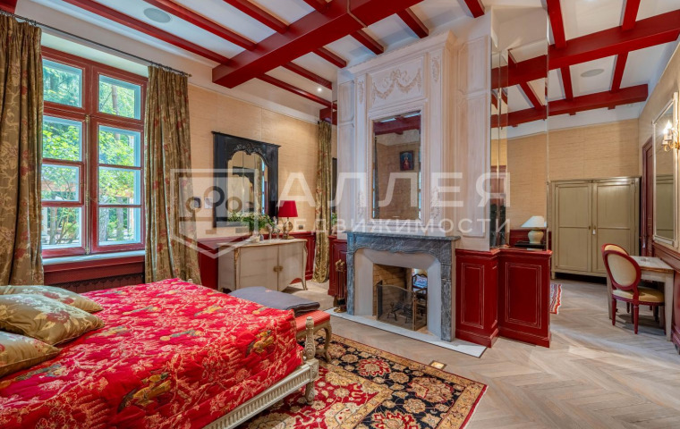 2 этаж: спальня с камином, гардеробной и с/у, 2 гостевые спальни с с/у, библиотека, спортзал, с/у