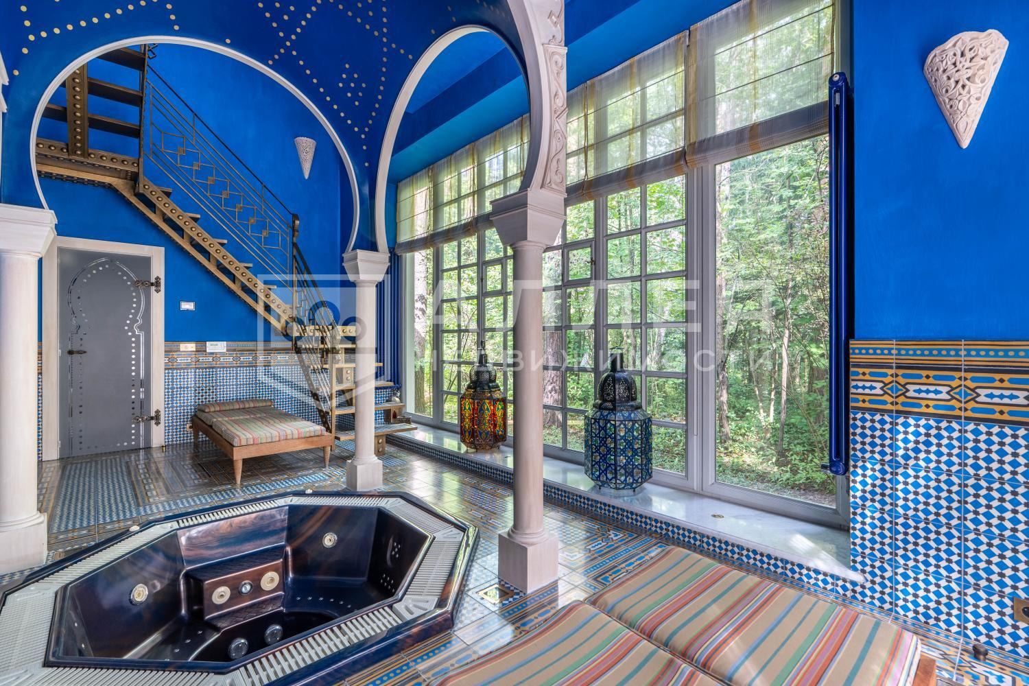 | Описание: | Лесной участок с уличным открытым бассейном и зоной отдыха на свежем воздухе. На территории выполнен ландшафтный дизайн с вымощенными брусчаткой зонами отдыха и декоративными фонтанами. |