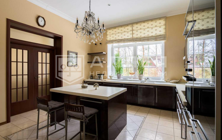1 этаж: холл, гардеробная, кухня-столовая, гостиная с камином, терраса, кабинет, с/у, постирочная, котельная, спа-комплекс: бассейн, сауна, с/у