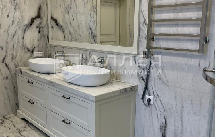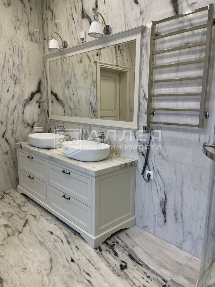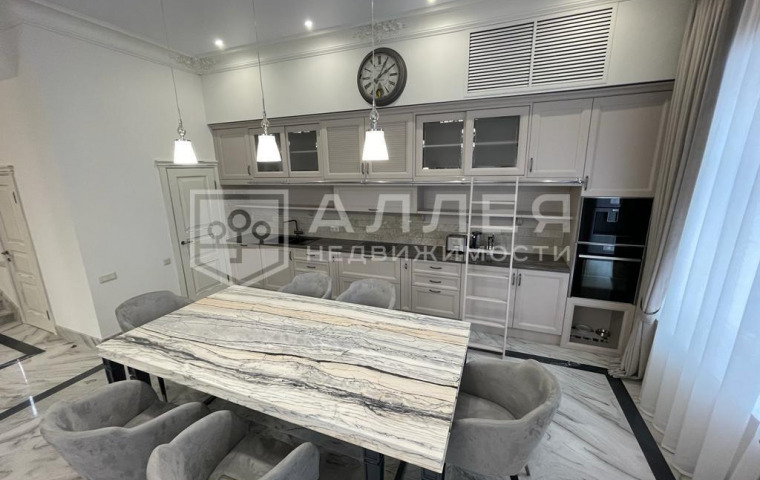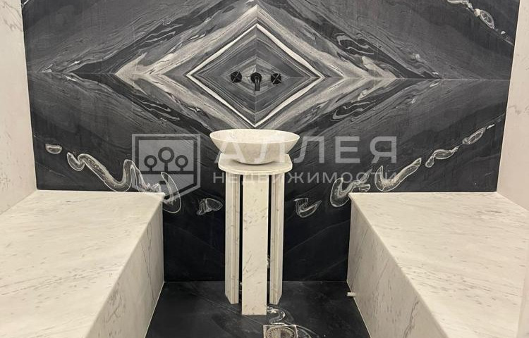 | Описание: | Мраморный дуплекс. В отделке использовано много мрамора: стены и полы, камин, подоконники, перила и ступени, столешница кухни и обеденного стола, хамам, а также столешницы туалетных столиков. Полностью меблирован дорогой мебелью изготовленной на заказ, с применением тканей из Италии. Для создания уютной атмосферы на первом этаже имеется дровяной камин. Обеденный стол в зоне кухни и журнальный в гостиной, выполнены в редком мраморном слэбе Palissandro Classico. Фасад дома облицован кирпичом и натуральным камнем. Дом технически оснащён и готов для проживания. Весь дом оснащён "умной" системой очищения воздуха и кондиционирования. |